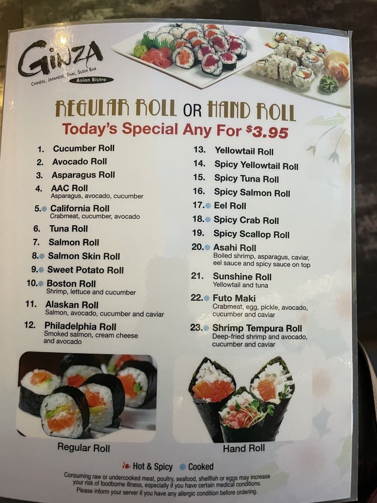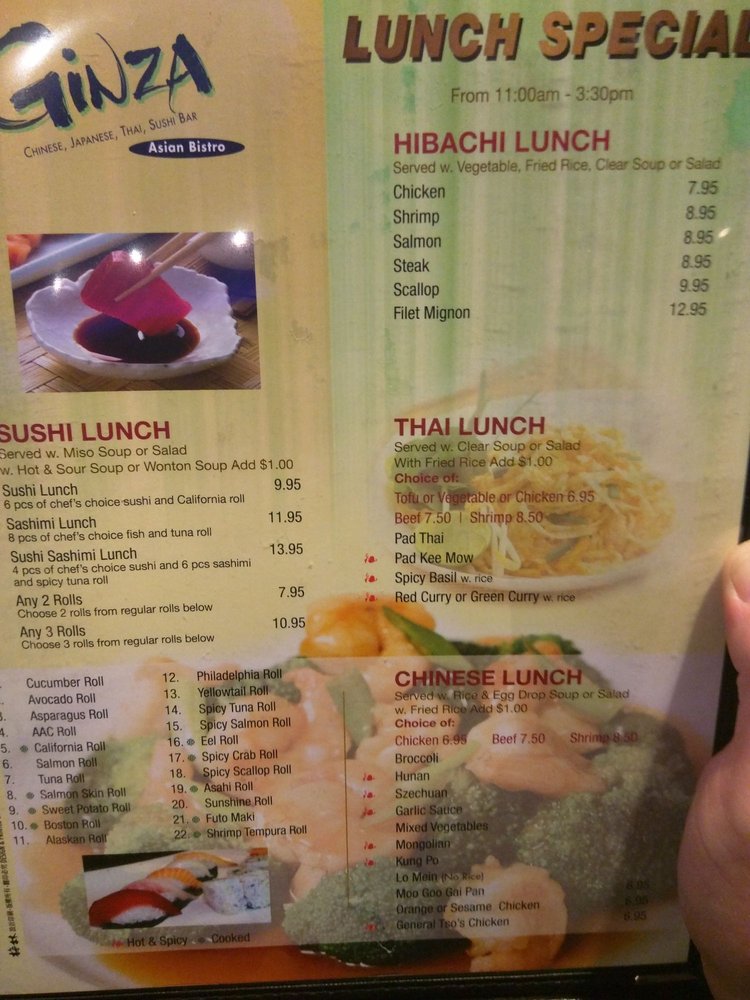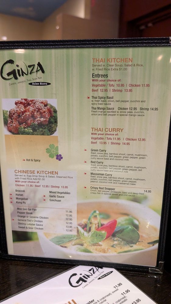 Ginza Asian Bistro, located in Louisville, KY, offers a diverse Asian Fusion menu with a focus on sushi. The restaurant provides a range of utilities, including delivery, takeout, reservations, and vegan options. Customers rave about the friendly service and delicious food, with options for every Asian craving. Highlights include the red snapper sushi, spring rolls with sweet chili sauce, and affordable lunch specials like the Super Spicy roll. While some dishes like the pink something roll received mixed reviews, overall, the quality and freshness of the food stood out. The casual yet intimate ambiance, attentive staff, and ample seating make Ginza a great spot for lunch or dinner. With affordable prices and great value, this bistro is a go-to for satisfying Asian cuisine.